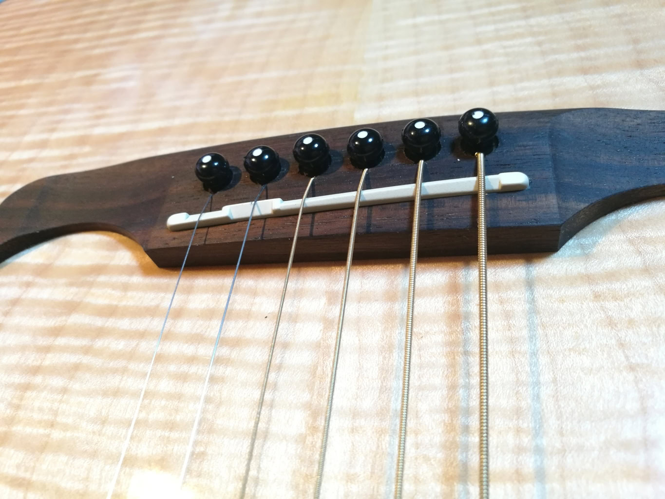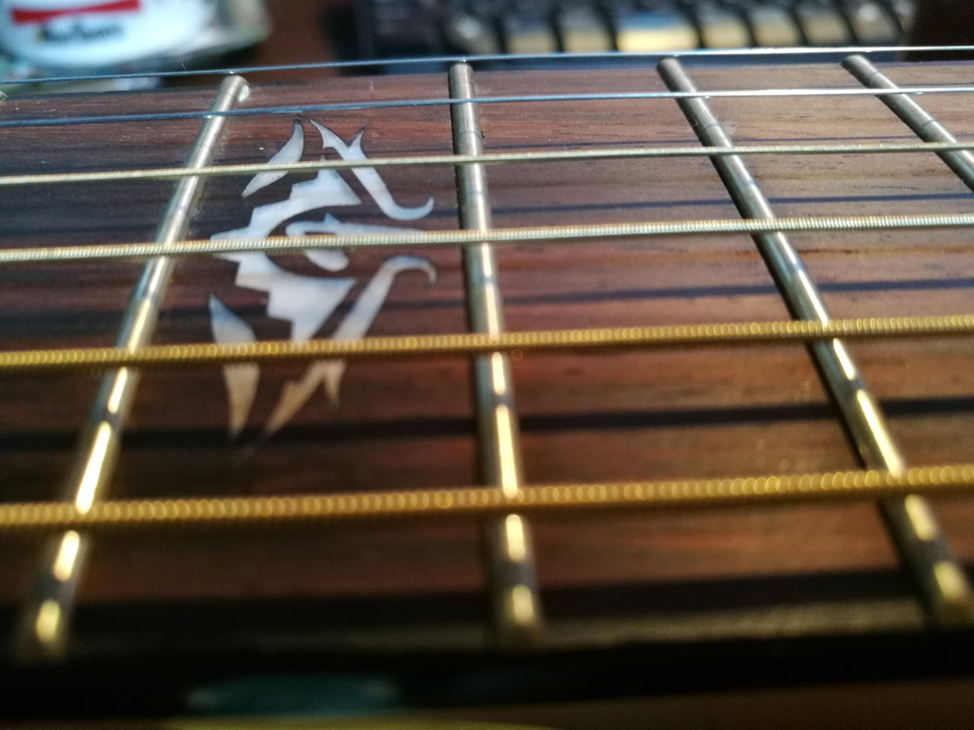 もう気持ちナットを低くすれば・・・牛骨製のナットとサドルを入手してあるので、そのうちに交換してみよう。